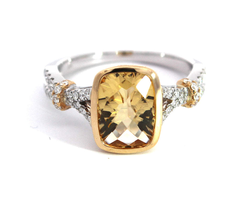 9ct Rose Gold Diamond & Smoky Quartz Ring #