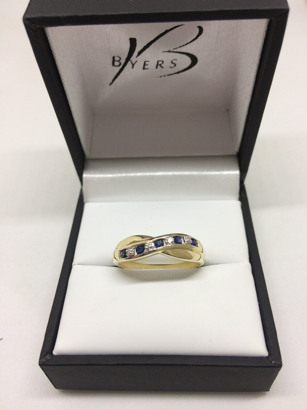 9ct Yellow Gold Sapphire and Diamond Crossover Style Dress Ring #1048