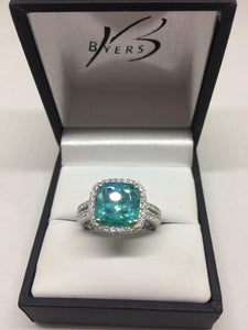 Sterling Silver Mint Cushion Cut Split Band CZ Ring #23783